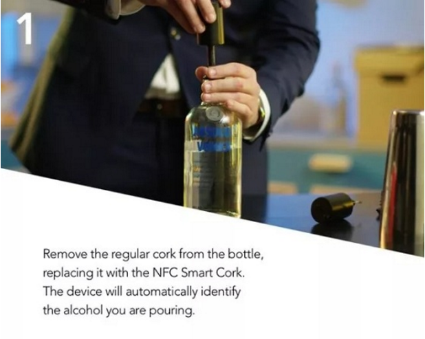 このデバイスは非常に使いやすく、まずボトルの栓を外し、SmartPourerに付属のNFCスマートコルクを挿入するだけです。すると、注いだワインが自動的に識別されます。その後、SmartPourerのオントロジーをインストールし、スマートフォンなどのNFC対応デバイスで起動できます。