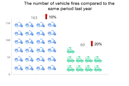広東省消防局のデータによると、電動自転車の火災は163件発生した。 2022年第1四半期 1年後 年間10%増加 また、電気自動車またはハイブリッド車の火災は60件で、前年比20%増加した。