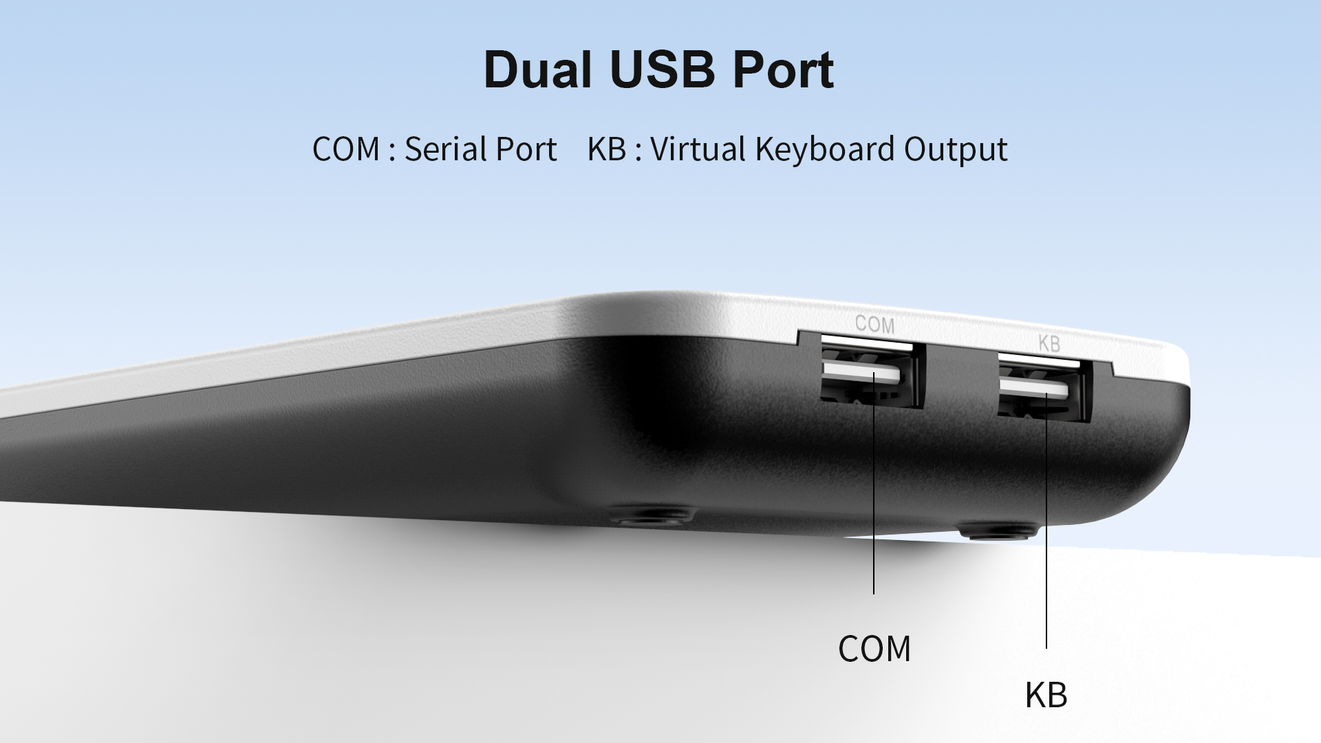 1. プラグアンドプレイキーボードエミュレーション[KB]ポート 2. USB-シリアルポート[COM]ポート | ||||