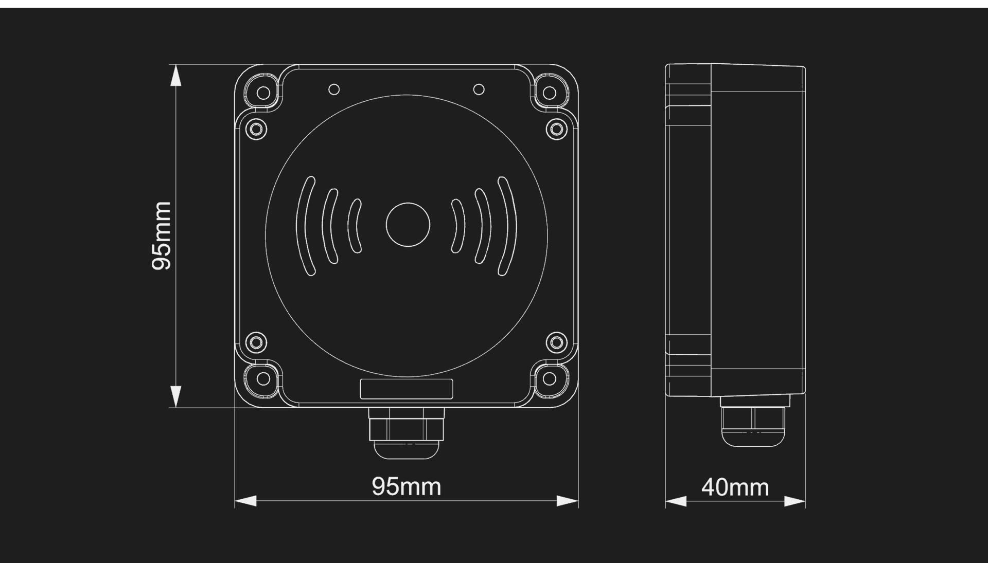 | 寸法 | 95(長さ)×95(幅)×40(高さ)mm | 3dBi円偏波アンテナ(内蔵) | ||