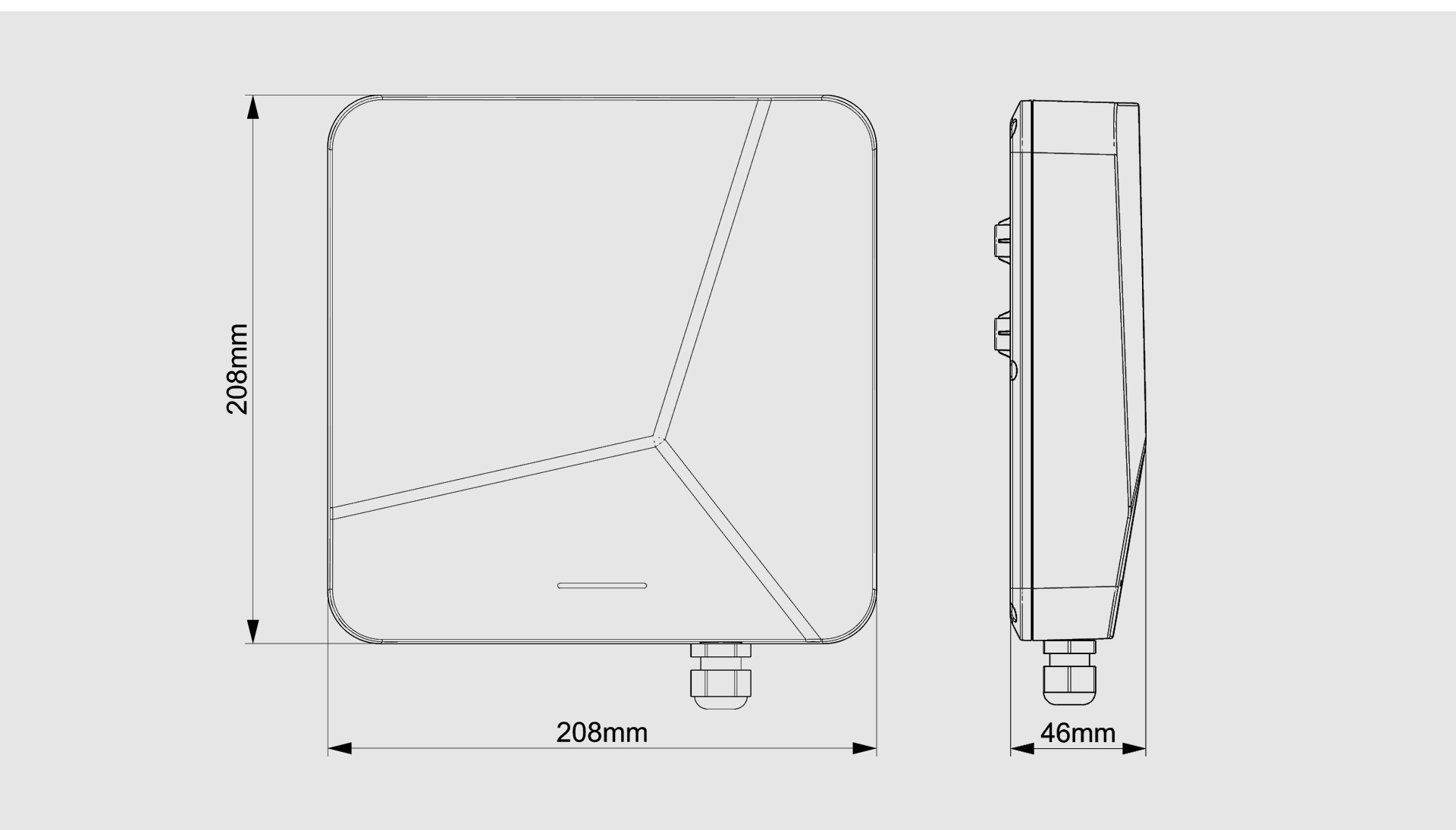 | 寸法 | 208(長さ)×208(幅)×46(高さ)mm | 8dBi円偏波アンテナ(内蔵) | ||